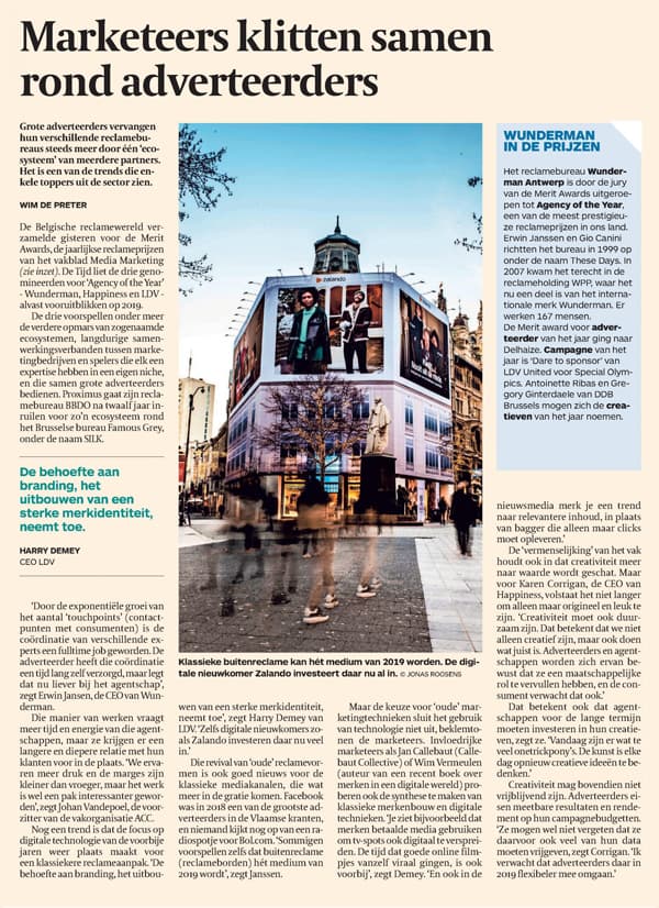 For the 5th time in 10 years, Happiness Brussels was nominated for Agency of the Year. We truly are honoured to have been so relevant for so long. Credit where it’s due: this year, the three nominees were asked to share their ideas on today’s advertising. Check out which insights our CEO Karen Corrigan considers to be most relevant for 2019!
